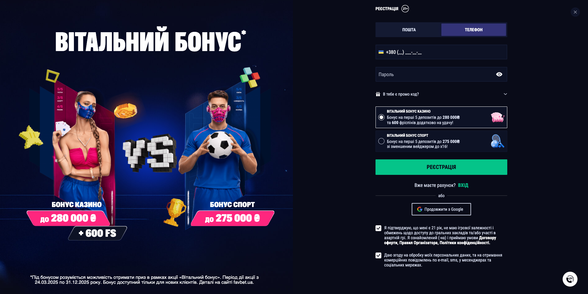 Зареєструватися та увійти в особистий кабінет на Favbet досить просто та швидко. Ось крок за кроком інструкція: